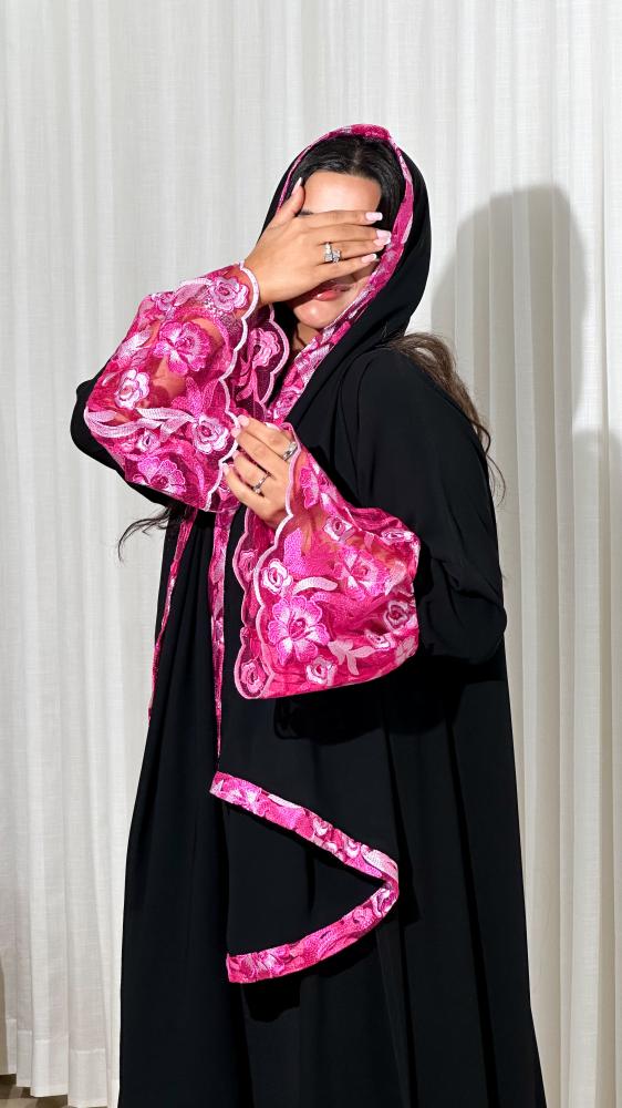 "العباية تأتي مع طرحة متناسقة كأحد ملحقاتها الأساسية، لتمنحكِ إطلالة متكاملة وراقية"